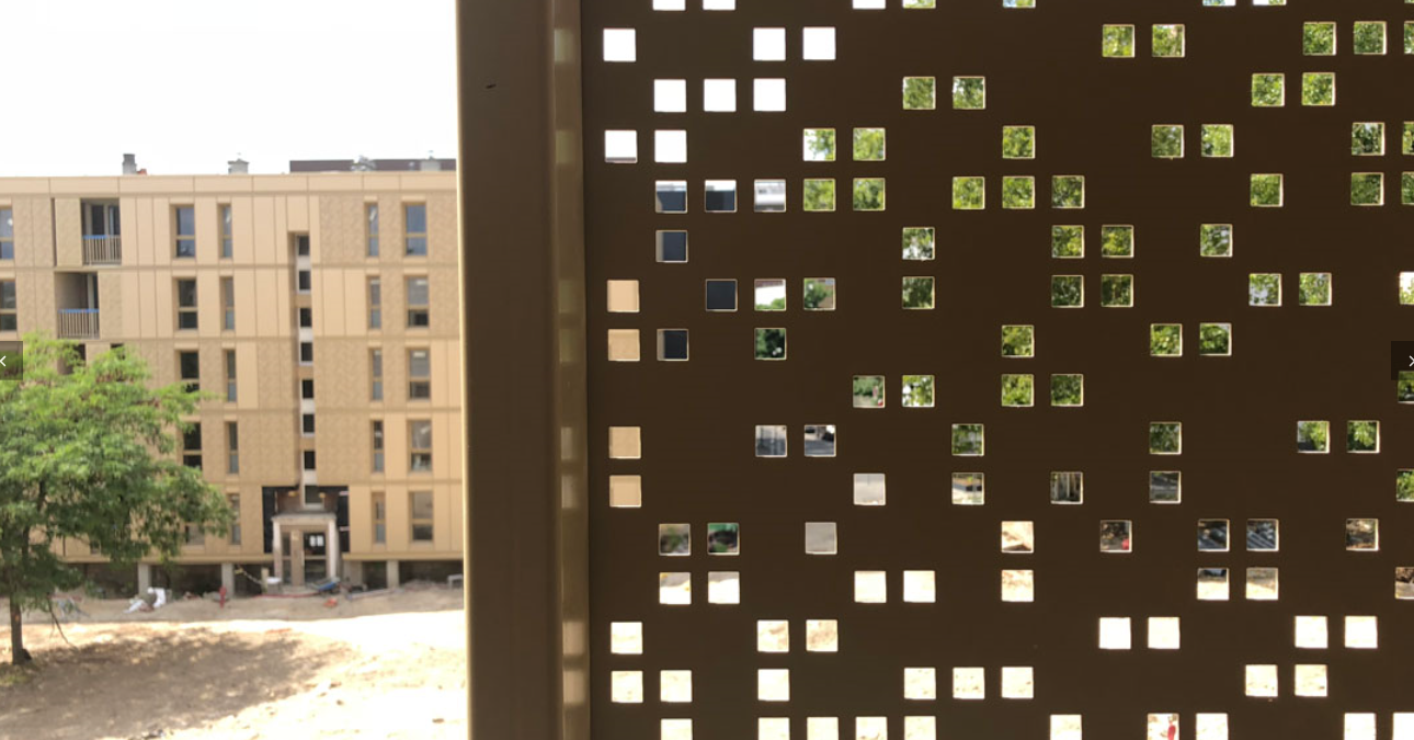 Dans ce contexte, ALUPIC a participé à l’habillage des façades extensions en fournissant des cassettes perforées aluminium issues du système InnoF F1. Ce choix s’inscrit pleinement dans la continuité esthétique du site : finesse des lignes, jeu de lumière, ventilation naturelle et durabilité du matériau.