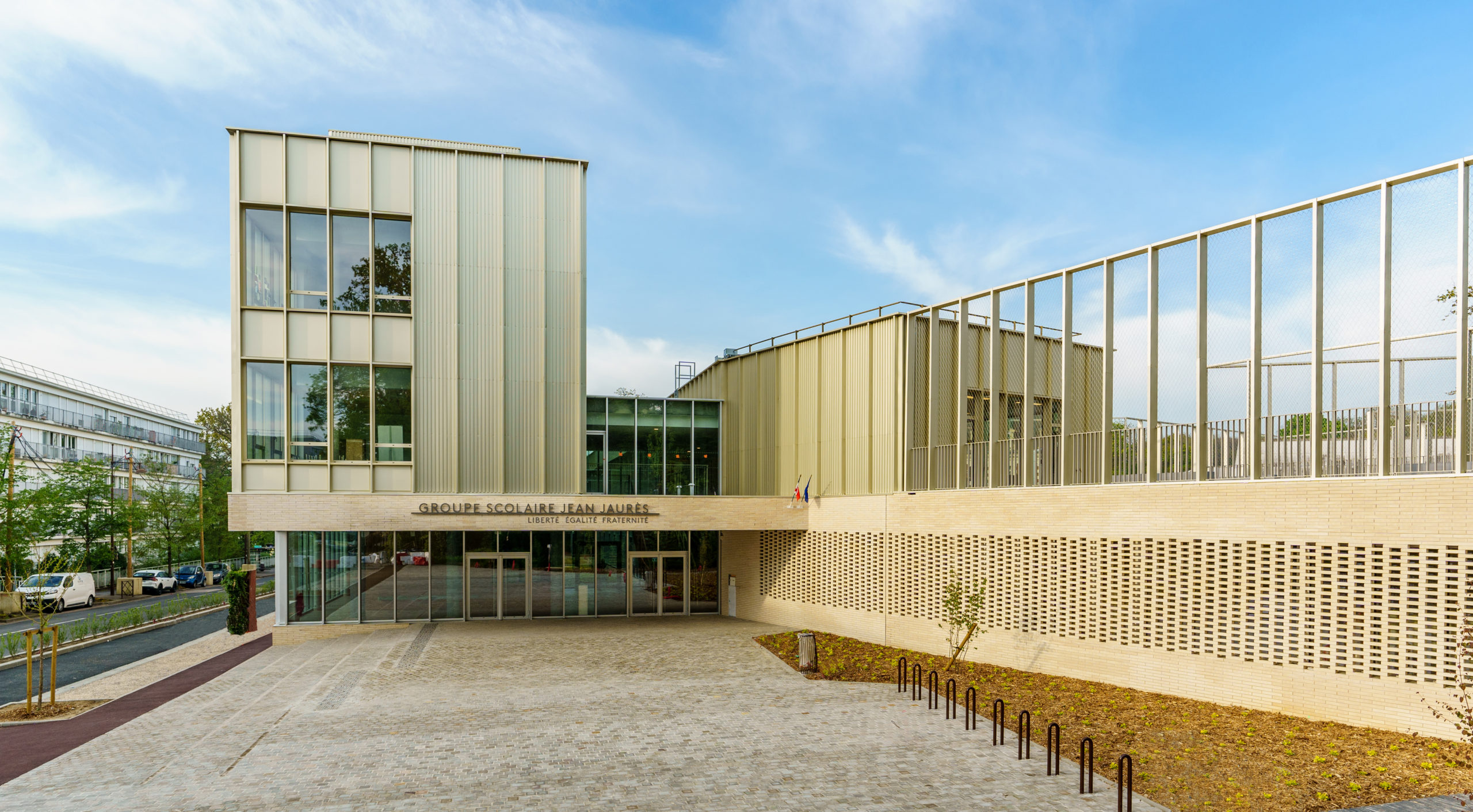 Situé entre la ville et la lisière boisée, le groupe scolaire Jean Jaurès constitue un bel exemple d’intégration architecturale réussie. Conçu par Nomade Architectes, ce projet allie modernité, fonctionnalité et durabilité au service du bien-être des enfants et du personnel enseignant.