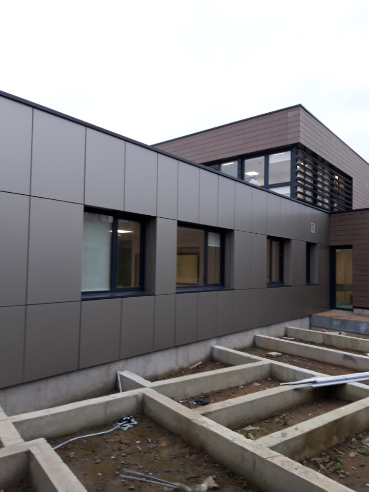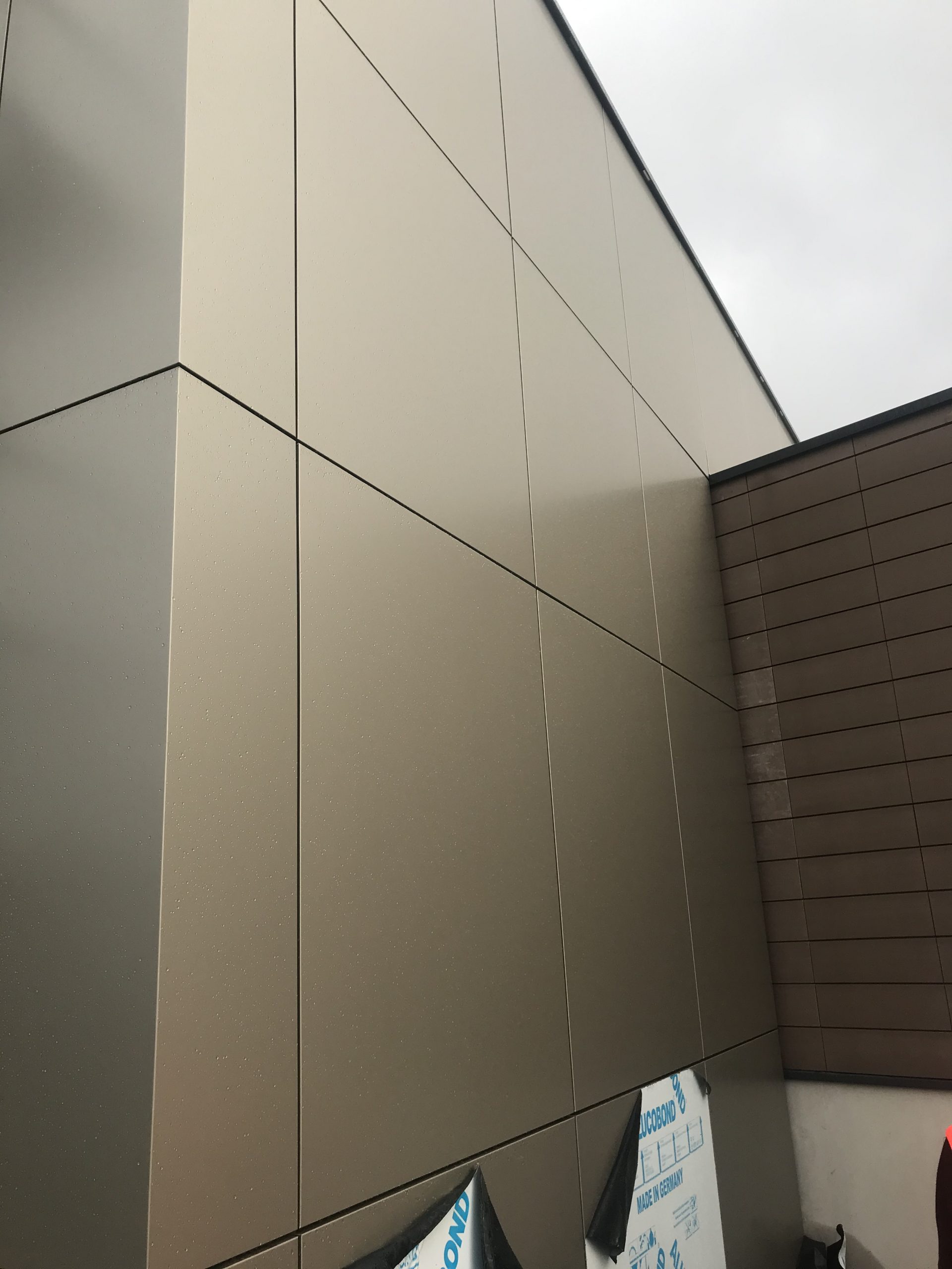 Le choix du composite Alucobond garantit une excellente stabilité, une résistance à la corrosion et un entretien minimal, tout en valorisant l’architecture contemporaine du bâtiment.