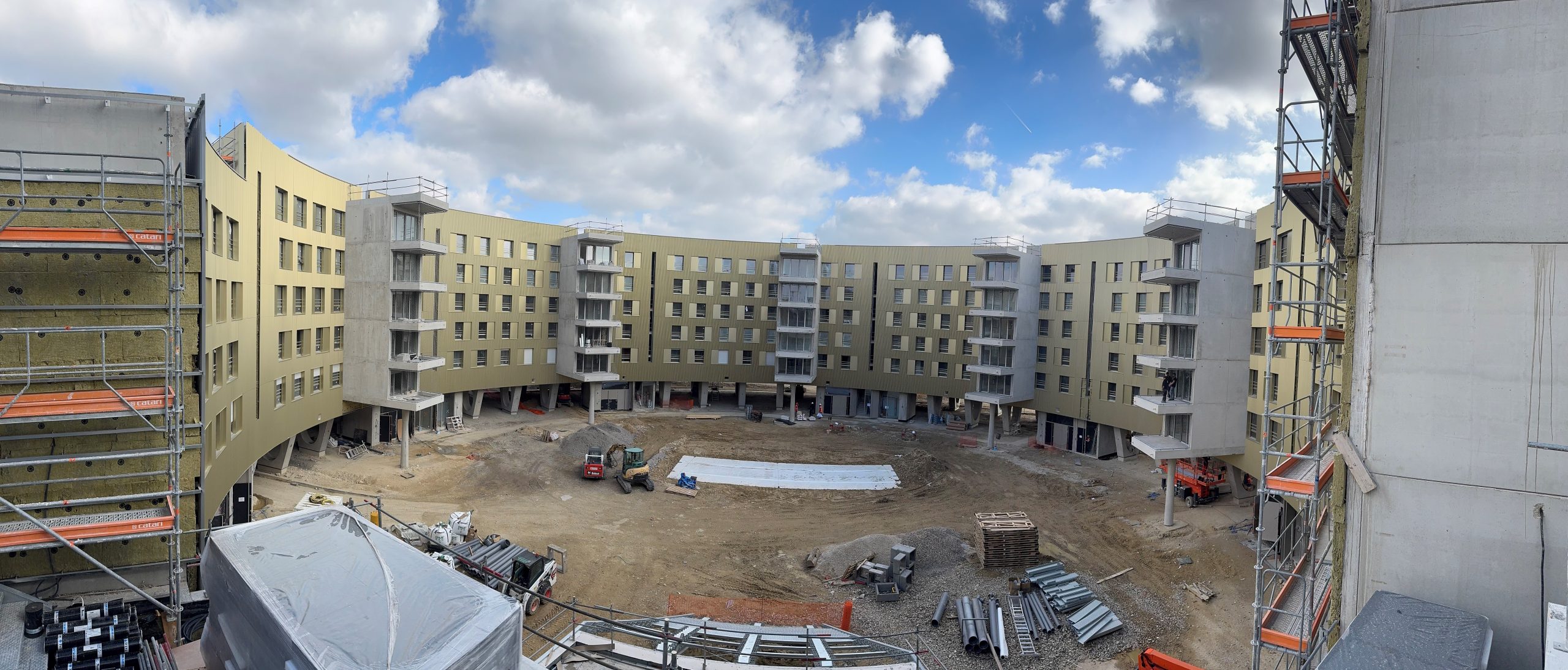 Ce sont 438 modules préassemblés en usine, totalisant près de 2 880 m², qui ont été conçus, fabriqués et livrés depuis notre site du Havre.